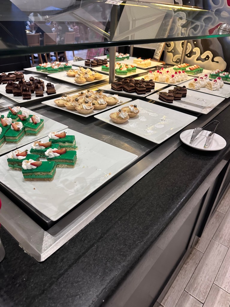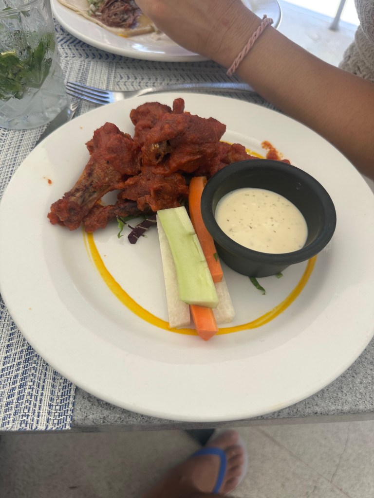 Dining options are varied with seven restaurants and multiple bars, but quality was hit-or-miss. Tamarindo, the Mexican restaurant, was a standout for our daughter’s birthday dinner—we enjoyed tacos, ceviche, fajitas, and fish Veracruzana style, followed by a fun “happy birthday” serenade with flan and a giant sombrero. They even surprised us with a chocolate cake in the room later. The Carnival buffet had themed nights like Asian, but the food was mediocre at best. Himitsu’s teppanyaki show was entertaining with fire tricks and ample portions of chicken, steak, and shrimp, though again, the taste was average. Castaways offered a taco fest for lunch (tacos were okay, but wings were dry), and Barefoot Grill provided quick snacks like tacos and fries by the pool.