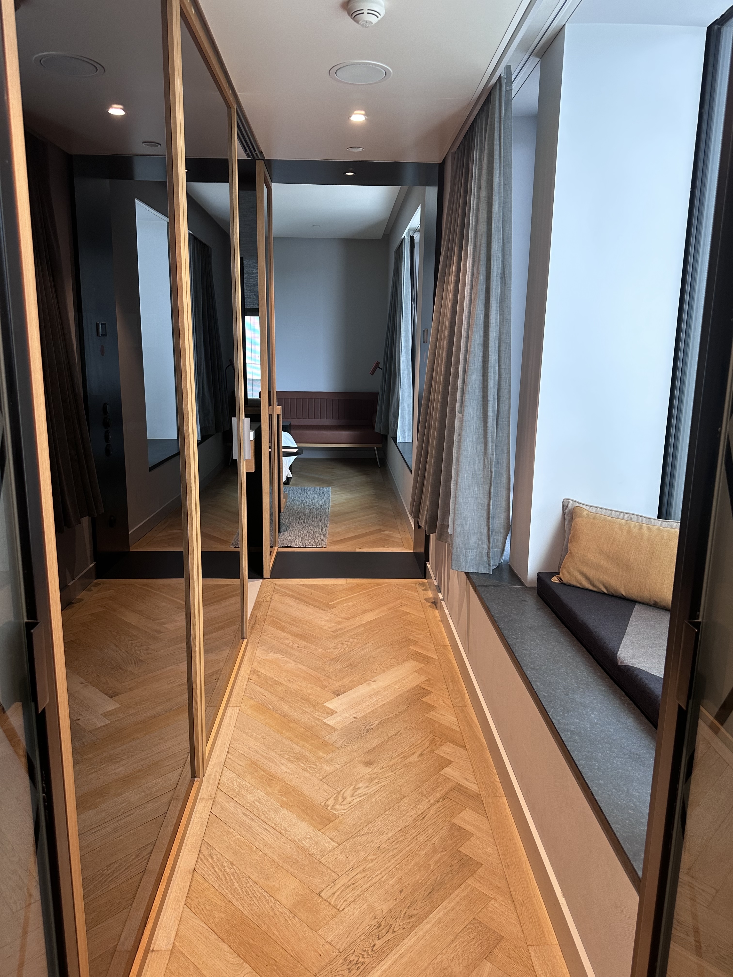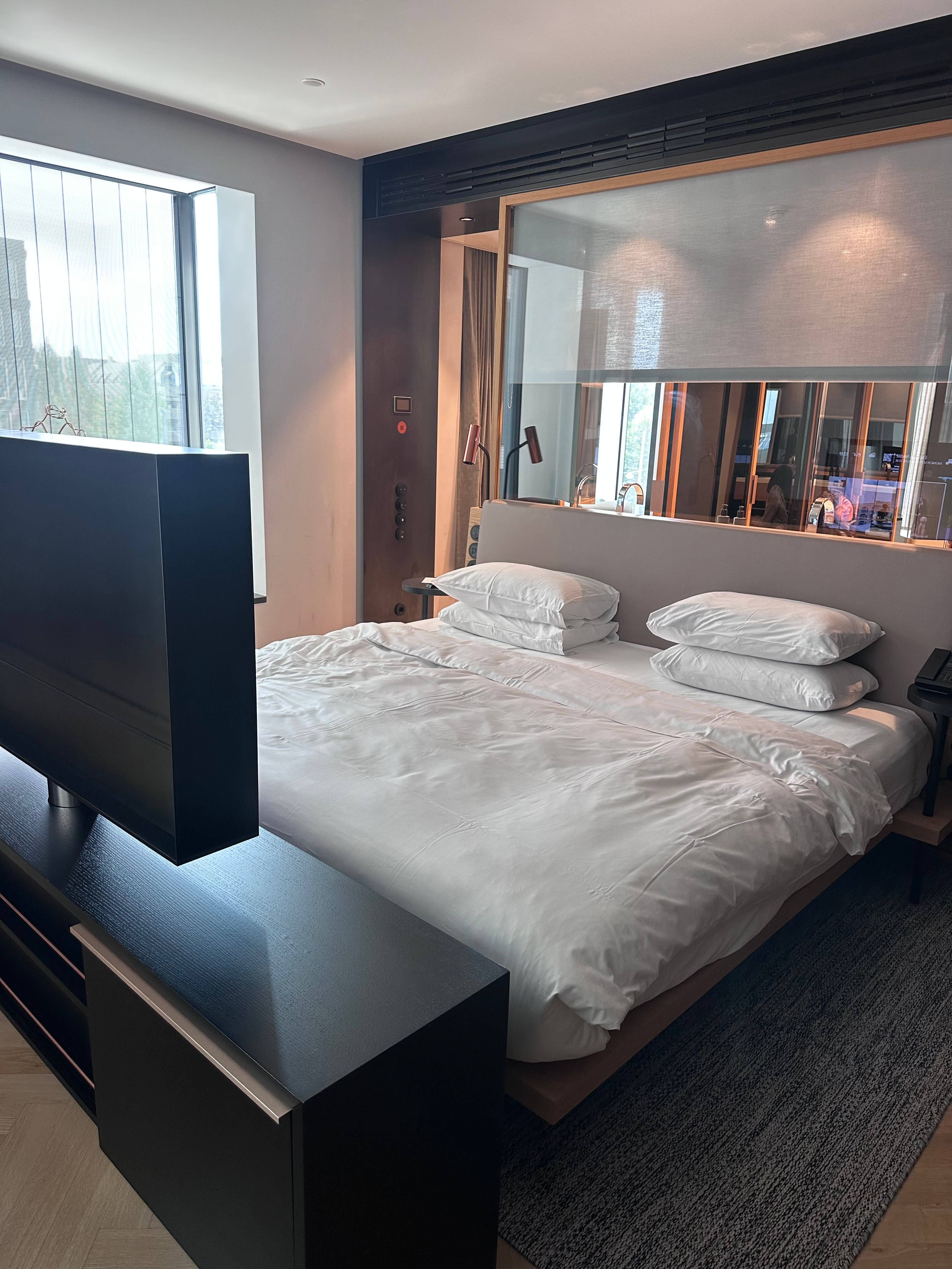 Our suite was an absolute highlight: around 1,000 square feet with a separate living area, king bed, and plenty of space for the kids. The rollaway bed we requested was set up in the living room, and one night, our daughter even cozied up in a bay window nook with pillows. The bathroom featured a large freestanding bathtub where both girls splashed around happily. Non-alcoholic minibar drinks were free, and the room’s designer touches – like custom artwork and floor-to-ceiling windows – made it feel luxurious yet welcoming. The staff was incredibly accommodating, from handling our luggage to suggesting family-friendly spots. Pros: Spacious rooms, great breakfast spread, rooftop bar with views. Cons: A bit removed from the old town (about 15-20 minutes by public transport), and dinner at the on-site Lonely Broccoli restaurant was pricey (though worth it for the dry-aged steak). We’d definitely return – it’s excellent value on points, equivalent to about €400-500 cash per night during peak season.