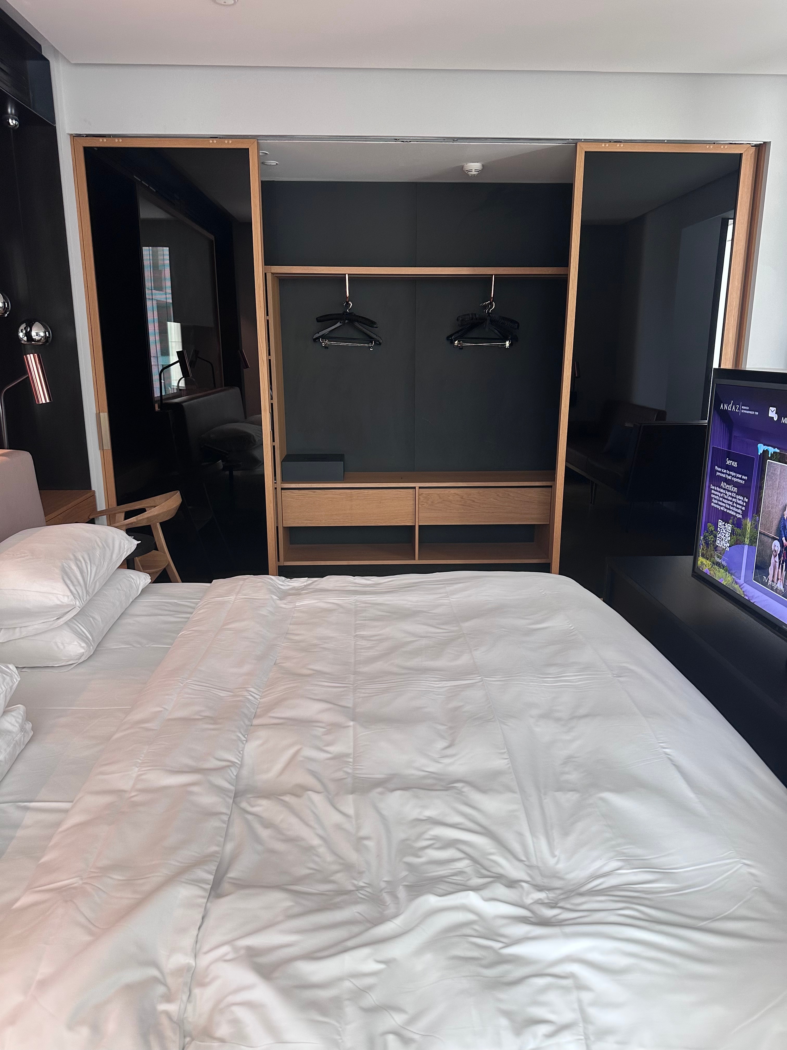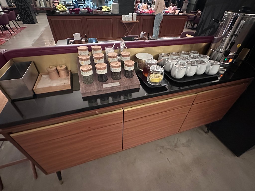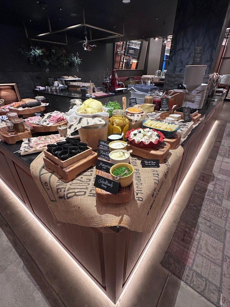 We chose the Andaz Munich Schwabinger Tor for its modern vibe and convenient location in the Schwabing district, just a short Uber ride from key attractions like the BMW Museum and Oktoberfest grounds. As Hyatt Globalists, we enjoyed perks like early check-in at 11:30 AM on arrival day and complimentary breakfast – though the happy hour in the lobby was open to all guests and a nice bonus.