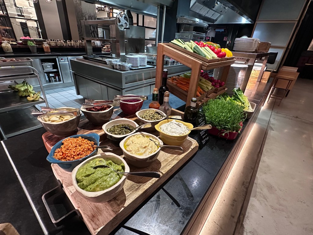 We started with a hearty breakfast at the hotel’s Bicicletta restaurant (included for Globalists): An impressive buffet with granolas, alternative milks, fresh-pressed hazelnut-chocolate spread for “homemade Nutella,” pre-cut fruits, eggs, bacon, and pastries.