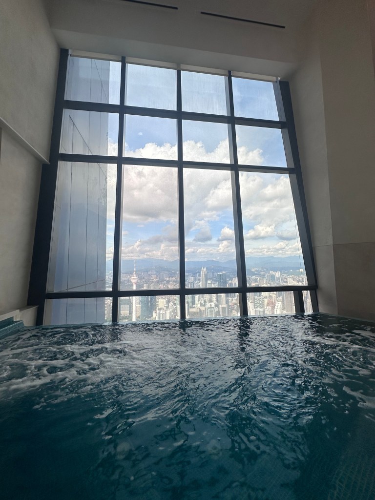 This was our chill day, fully utilizing the Park Hyatt’s amenities. The infinity pool on the 99th floor offered breathtaking city views while swimming—imagine floating above KL’s skyline with the kids splashing around (complimentary for guests). Adjacent spa facilities included saunas, a steam room, and jacuzzi with panoramic vistas. The gym was spacious, with top-tier equipment like Peloton bikes and treadmills overlooking the city.